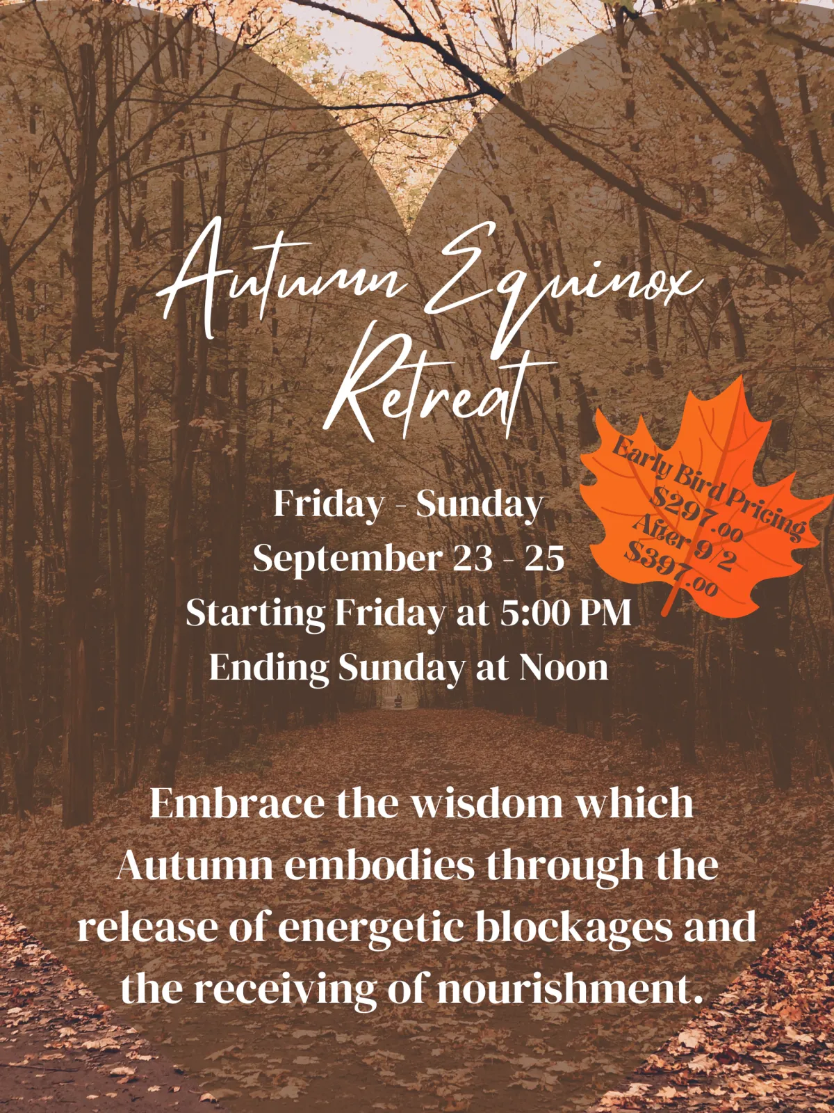 Autumn is a time to harvest our energetic endeavors with clarity and wisdom to discover the ways in which we can move forward with strength and courage. Join us to deepen your connection to yourself, the rhythms of Nature, and Spirit.